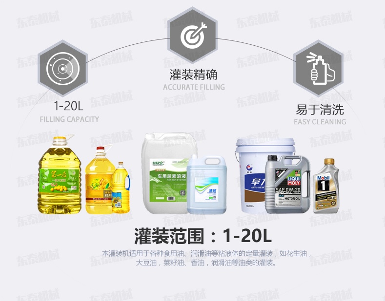半自動食用油灌裝機設(shè)備介紹 半自動食用油灌裝機適用于各種食用油、潤滑油等粘液體的定量灌裝,如花生油,大豆油,菜籽油、香油,潤滑油等油類的灌裝。采用先進的定量灌裝技術(shù),結(jié)合微電子智能控制技術(shù)單頭單變頻