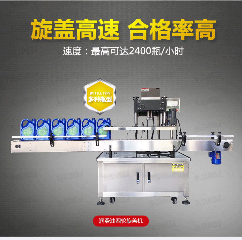全自動旋蓋機(jī)是參照國機(jī)型改進(jìn)設(shè)計(jì)、旋蓋速度快,合格率高、操作方便。可適用于食品、制藥、日化、農(nóng)藥、化妝品等行業(yè)的不同瓶形的旋蓋。四臺調(diào)速電機(jī)分別用于供蓋、夾瓶、傳送、旋蓋,機(jī)器自動化程度高,穩(wěn)定性好,調(diào)節(jié)方便,更換瓶形或蓋時無須備件,只需作調(diào)整即可完成(如配上蓋機(jī),可進(jìn)行自動上蓋)可以根據(jù)實(shí)際需要選配。