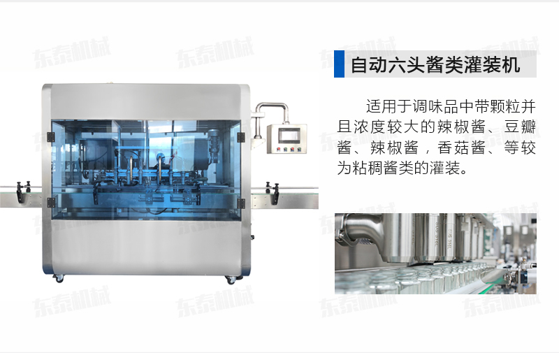 該系列灌裝機(jī)采用活塞式氣缸驅(qū)動(dòng)原理,適用于調(diào)味品中帶顆粒并且濃度較大的辣椒醬、豆瓣醬、辣椒醬,香菇醬、等較為粘稠醬類的灌裝。灌裝轉(zhuǎn)閥可以根據(jù)客戶物料定做加大,以適應(yīng)不同客戶物料的灌裝需求。配備臥式攪拌料斗,大限度的保障在灌裝過程中物料均勻、無油醬分離。該設(shè)備在設(shè)計(jì)上大大縮短了下料斗到灌裝頭的灌裝距離,克服了含油量大的物料(如:含芝麻粒的辣椒油)在灌裝過程中出現(xiàn)的有些瓶油多,有些瓶醬多的灌裝誤差大的缺點(diǎn)。