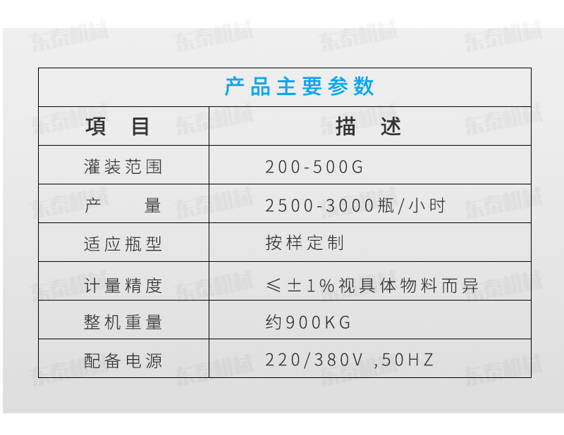 3、灌裝機采用橫推料的方式,大大縮短了下料斗到灌裝頭的距離,提高了灌裝速度,更重要的是解決了含油量大的物料在灌裝過程中出現(xiàn)的有些瓶油多,有些瓶醬多的灌裝難題,大大提高了灌裝精度。