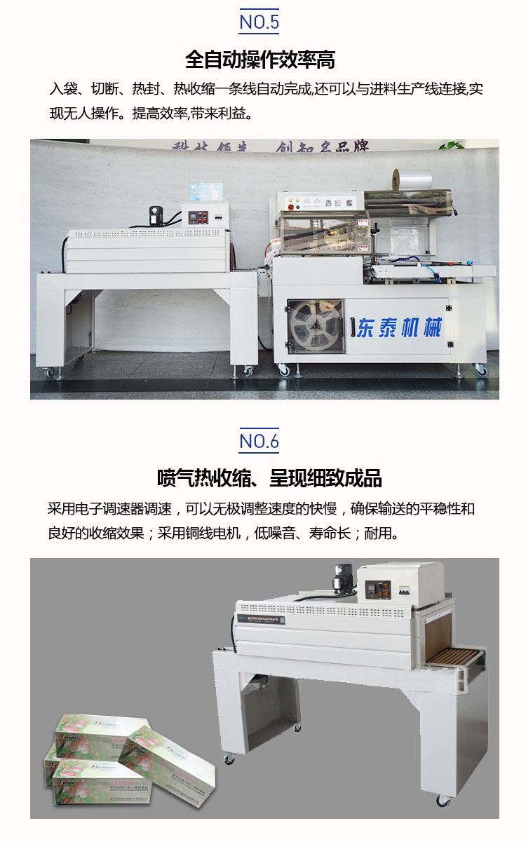 全自動套膜收縮機是由全自動450L封切機和熱收縮機組成,入袋、切斷、熱封、熱收縮一條線自動完成,還可以與進料生產(chǎn)線連接,實現(xiàn)無人操作。提高效率,帶來利益。全自動化封切收割,適用于各種物品的套膜及收縮,生產(chǎn)效率高,品質(zhì)有保證。